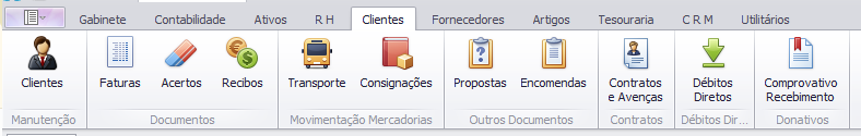 - Grupos: Permite definir grupos e sub-grupos de clientes, de modo a possibilitar agrupar clientes, segundo qualquer constante;